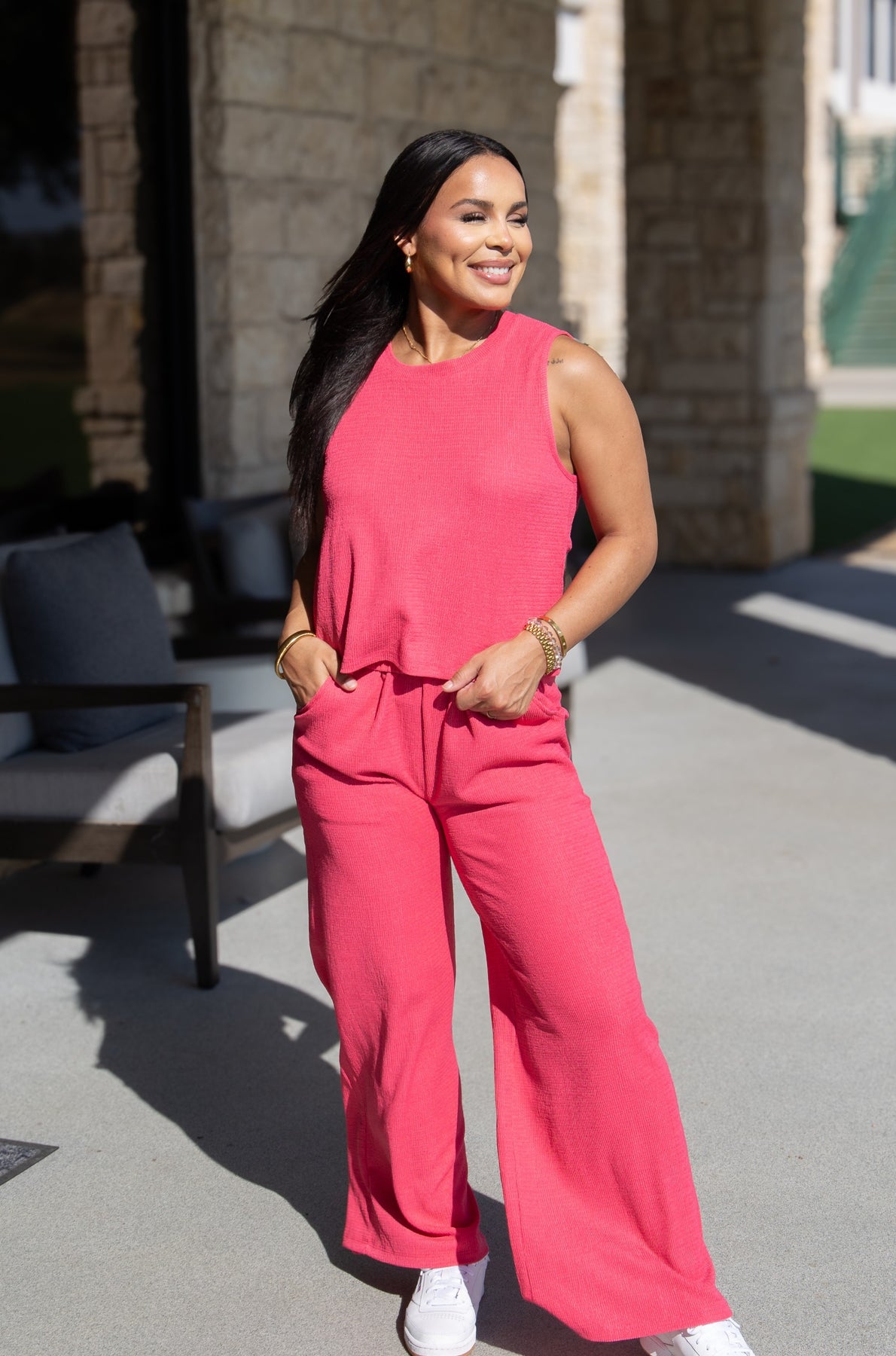 Relax in style with our Textured Knit Lounge Pants, designed for all-day comfort and effortless sophistication. Featuring a soft, lightweight textured fabric with a relaxed silhouette, these pants offer a flattering drape and easy movement. The elastic waistband ensures a comfortable fit, while side pockets add a practical touch. Perfect for lounging at home, casual outings, or travel days — these pants redefine cozy chic.