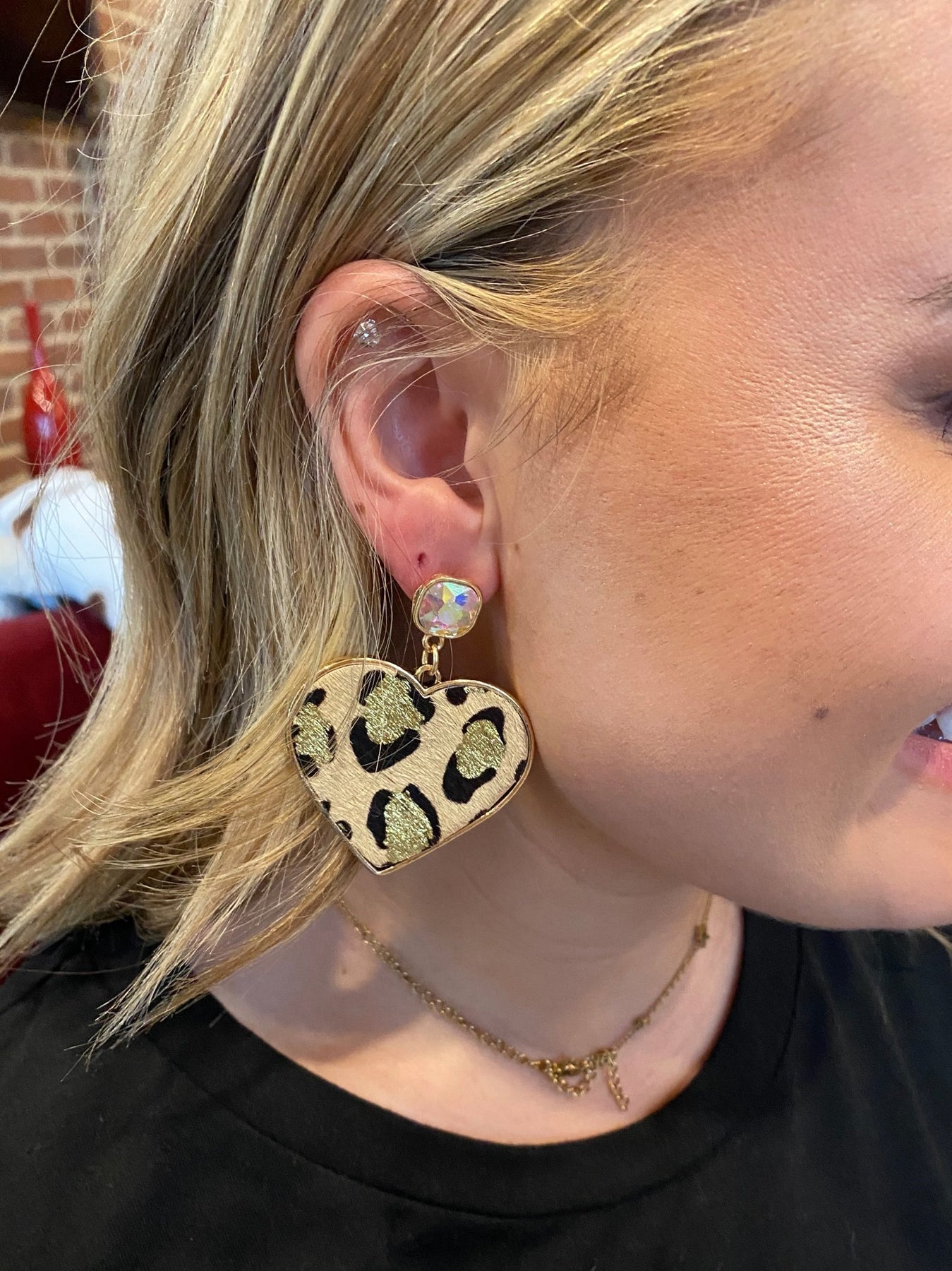 Don't Go Breaking My Heart Gold Leopard Stud Earrings, Cream