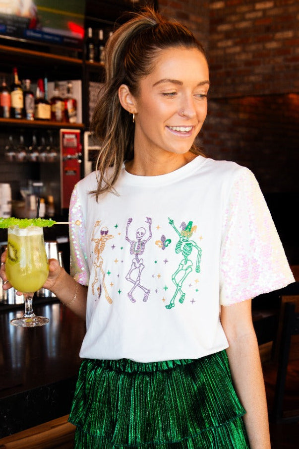 Its oversized fit provides comfort without compromising style, while the high-stretch fabric flatters your figure effortlessly. Designed with a classic crew neck, this piece stands out with sequin-adorned sleeves, fully lined to prevent any discomfort on the skin.